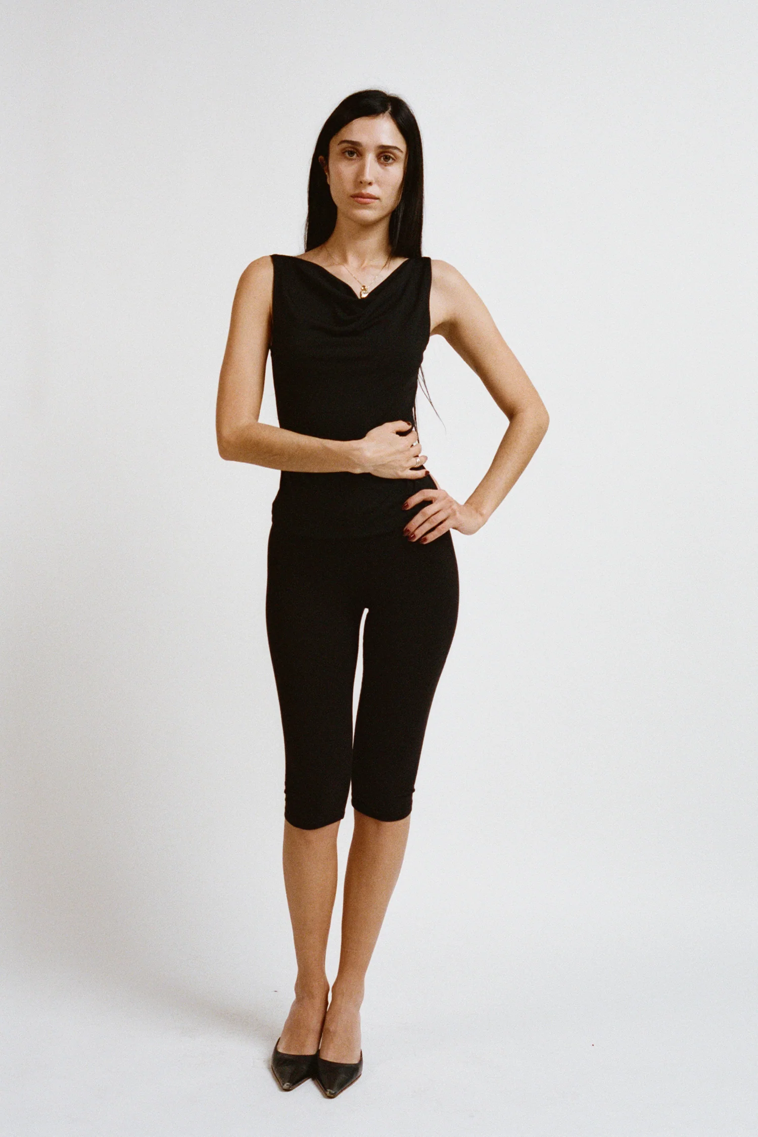 Our Harley Capri in Black is designed for a tailored fit with a flattering high waist and belt loops for easy accessorizing. Styled here with the Lani Top.