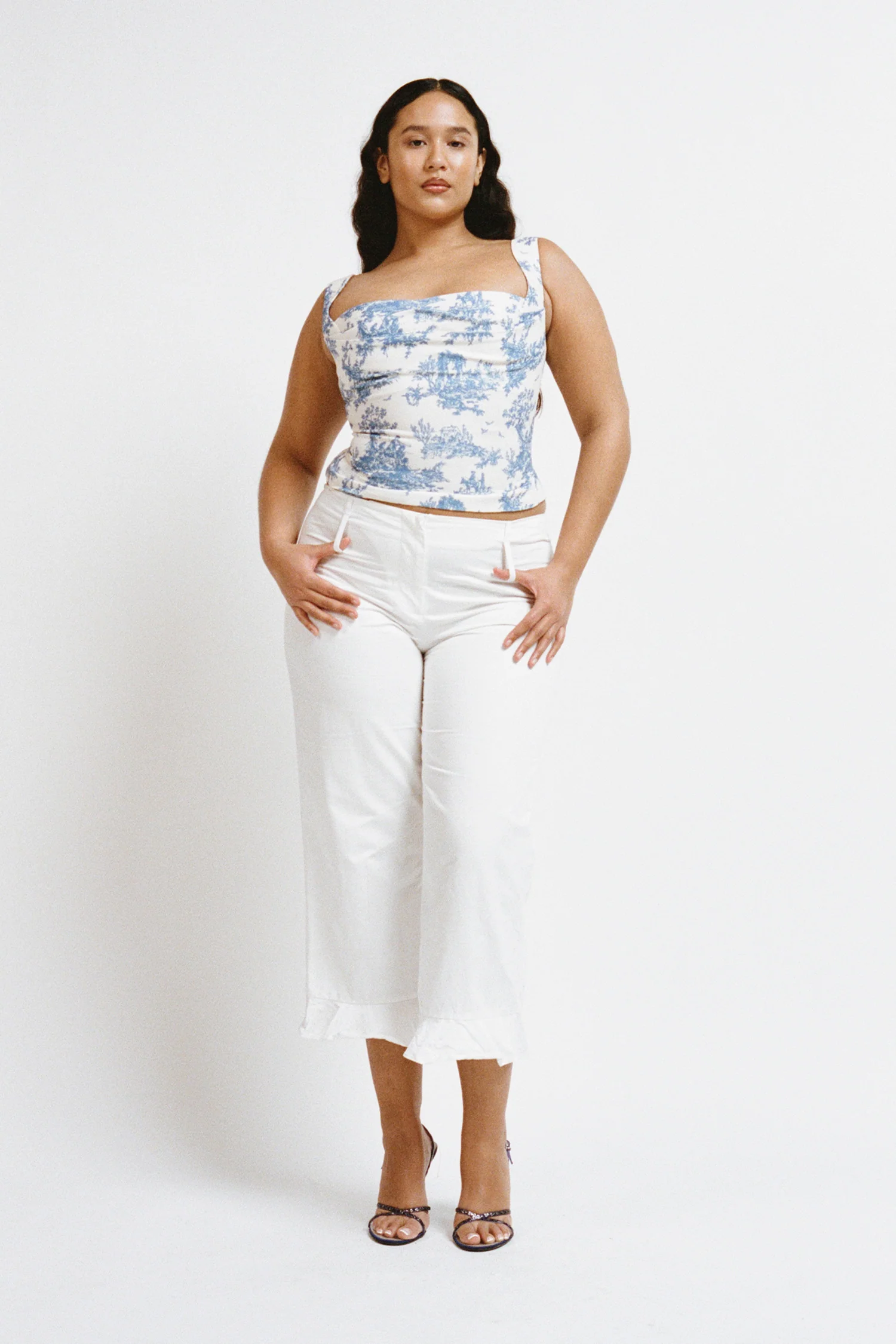Meet Imogene, our latest silhouette in our iconic Blue Toile print. The Imogene is a fully lined corset with a cowl neckline and back boning. She sure is one of a kind. Pair her with your favorite denim, or go head to toe with our matching Moni Skirt.